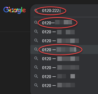 検索窓に電話番号を入力している途中で該当の電話番号が候補として表示されました。