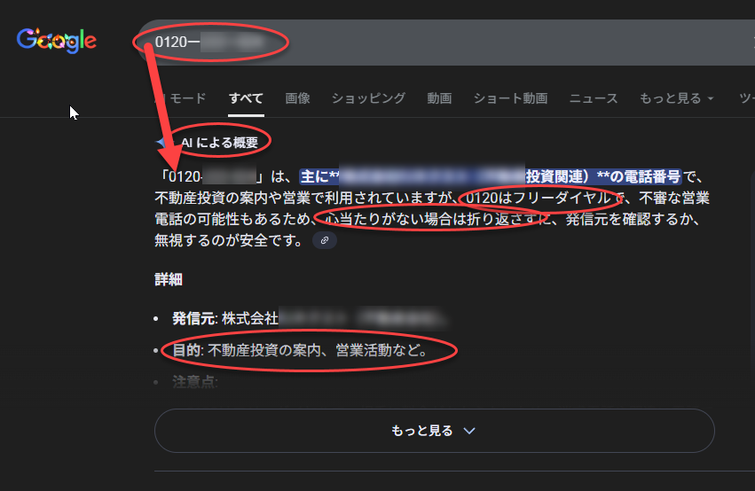 これは、他の人も過去に何度も検索している電話番号だということが推察できます。