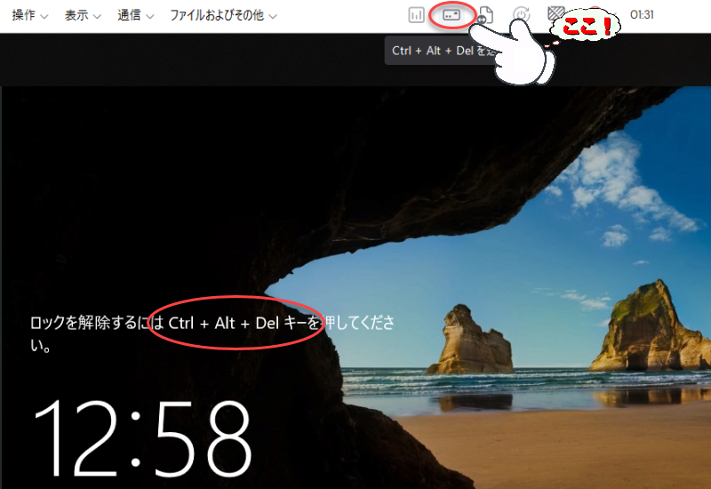 ちなみに、Windowsサーバーでログイン画面を表示するのは「Ctrlキー+Altキー+Deleteキー」を使います。