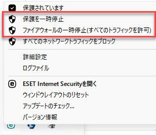 作業:PC-A側のESETの保護を一時停止