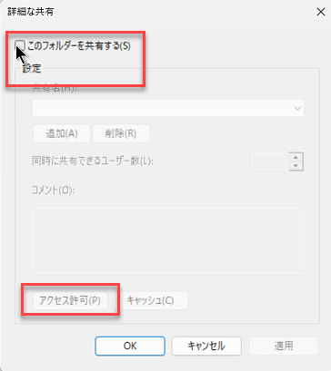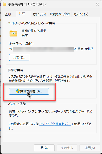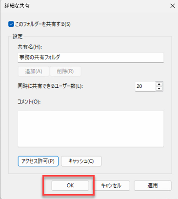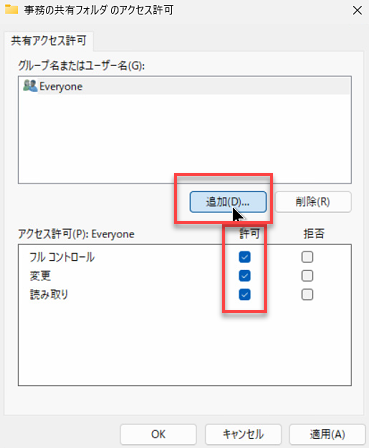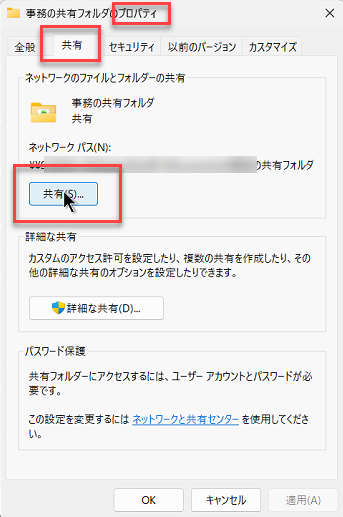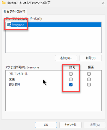 PC-A側の「事務の共有フォルダ」というフォルダーの共有設定の際設定