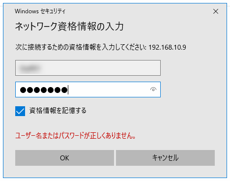 その2:PC-Aにネットワークでログインするための資格情報(PC-Aのユーザー名とパスワード)を入力して「資格情報を記録」する
