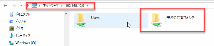 その5:PC-BからPC-Aの共有フォルダー「事務の共有フォルダー」が表示される⇒設定の完了