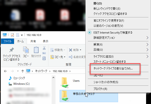 その4:右クリックして「ネットワークドライブの割り当て」
